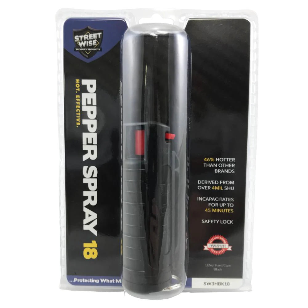 Streetwise 18 Stream Pepper Spray w/UV Marking Dye Black 1/2 oz Hard-Case SKU SW3HBK18