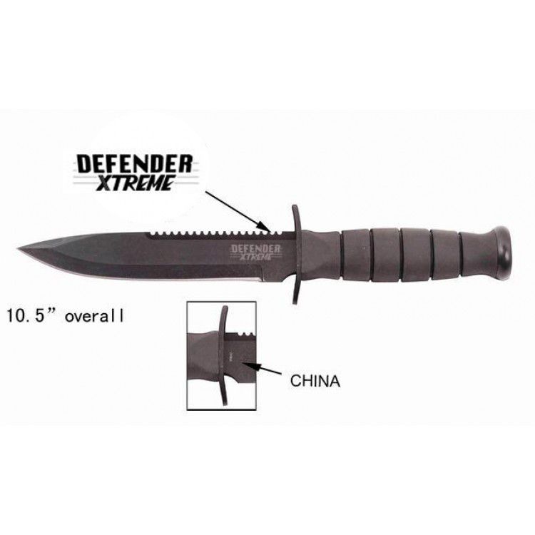 Defender-Xtreme 10.5" Hunting Knife w/Sheath & Sharpener Black Steel Blade/Black Handle SKU 5752