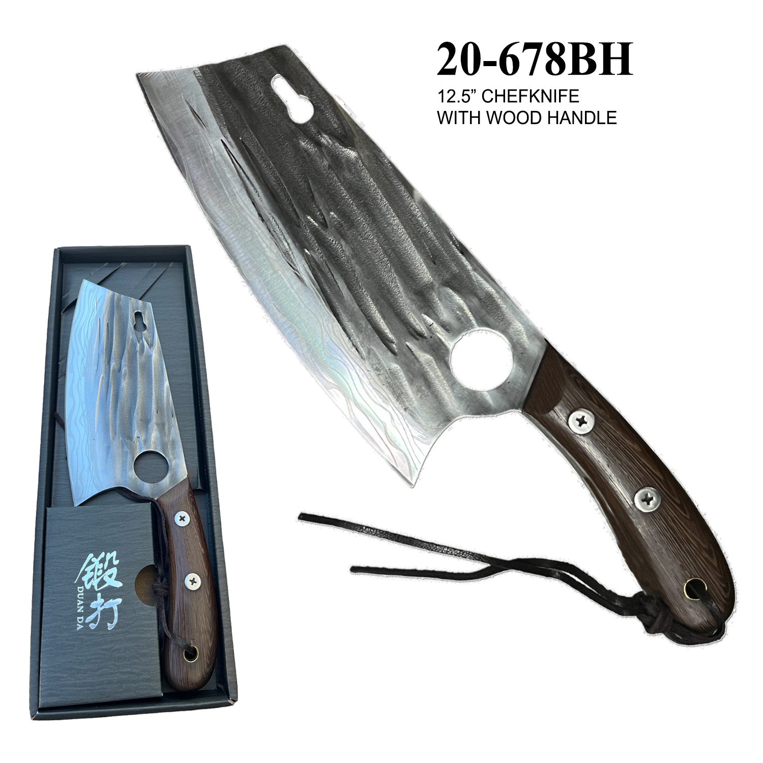 Hand Forged Chef Knife 12.5" Overall 1080 High Carbon Steel Blade/Brown Pakka Wood Handle SKU 20-678BH
