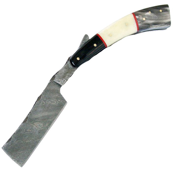 The Bone Edge Handmade Razor Blade w/Leather Sheath Damascus Steel Blade/Buffalo Horn Handle SKU 9200