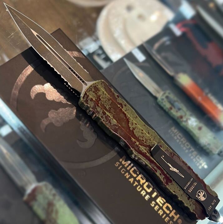 Microtech Dirac Delta Outbreak OTF Knife Double Edge Part Serr. M390 Steel Blade/Green Outbreak Alum. Handle SKU 227-2OBDS