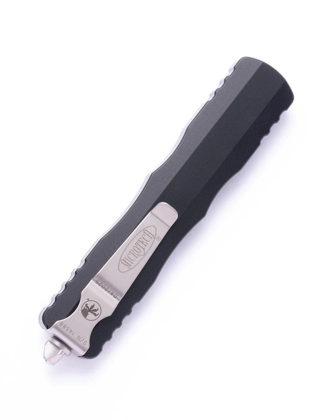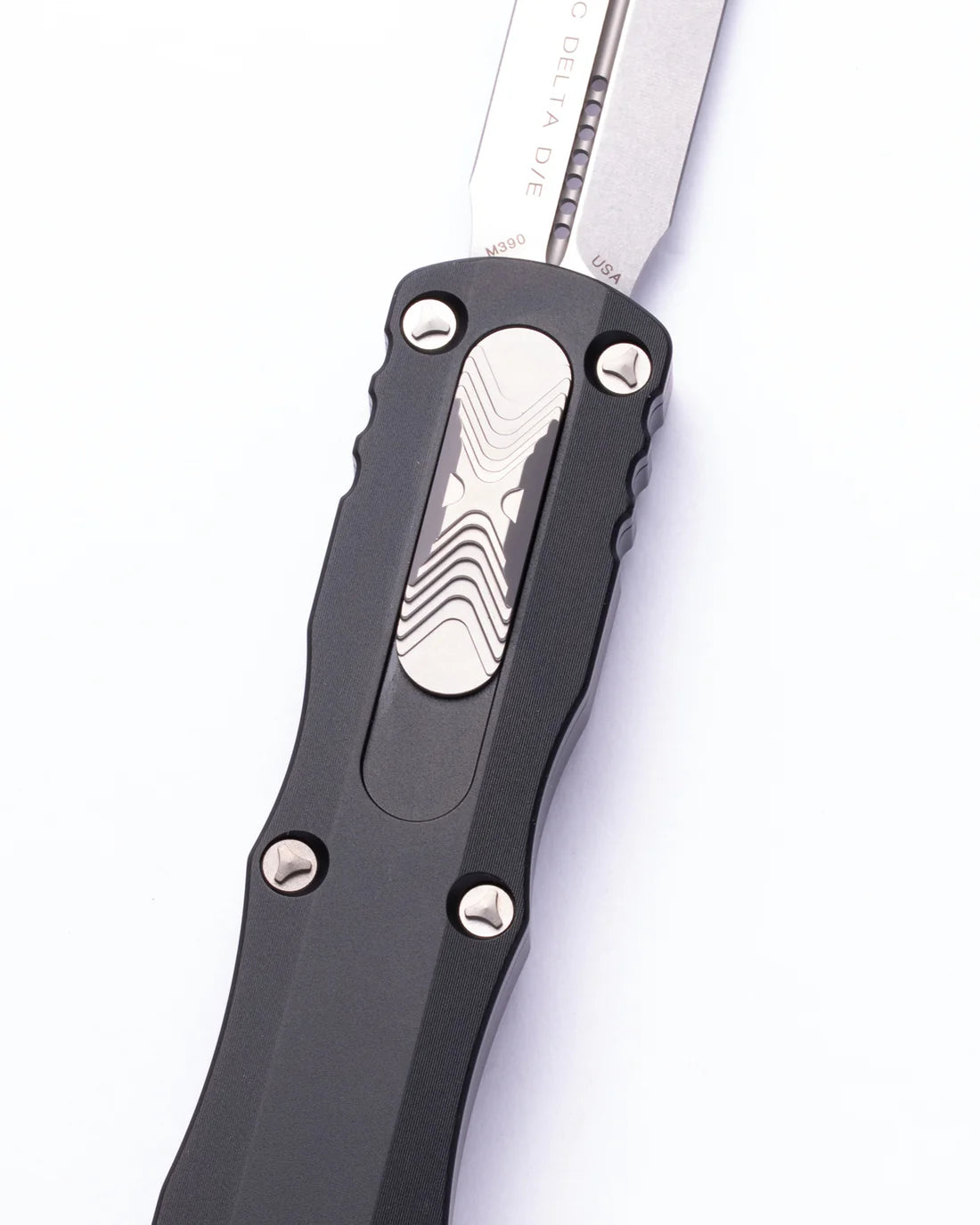 Microtech Dirac Delta Standard Double Edge OTF Knife Stonewash Stainless-Steel Blade/Black Aluminum Handle SKU 227-10