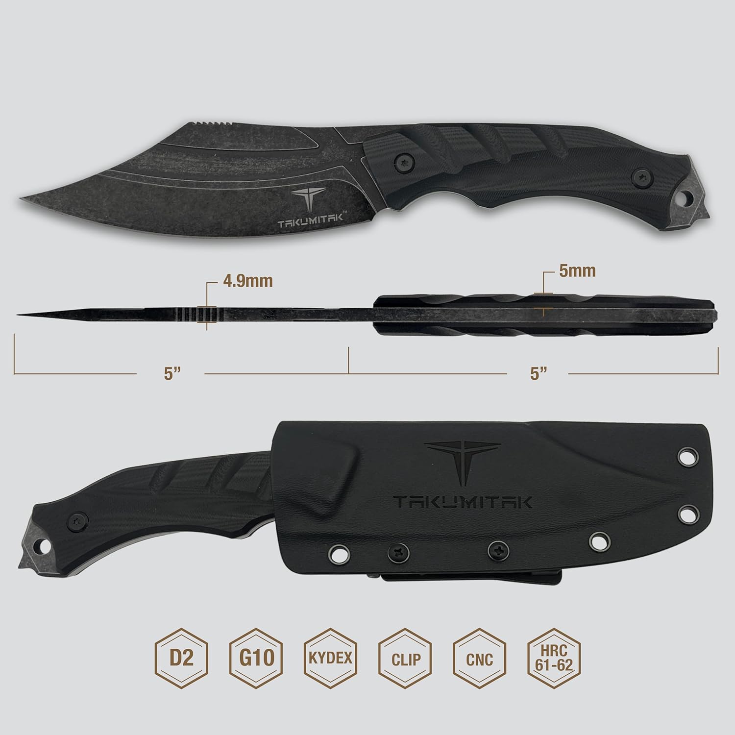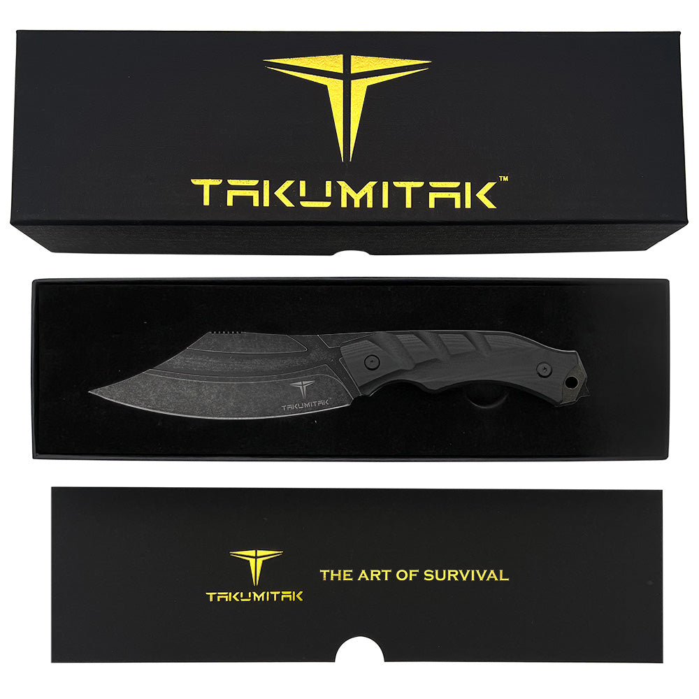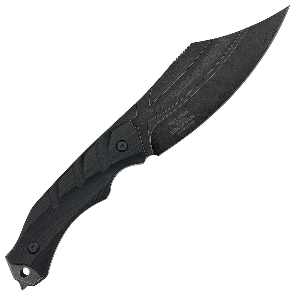 Takumitak Alert Fixed Blade Knife w/Sheath D2 Stonewash SS Blade/Black G10 Handle SKU TKF210SW