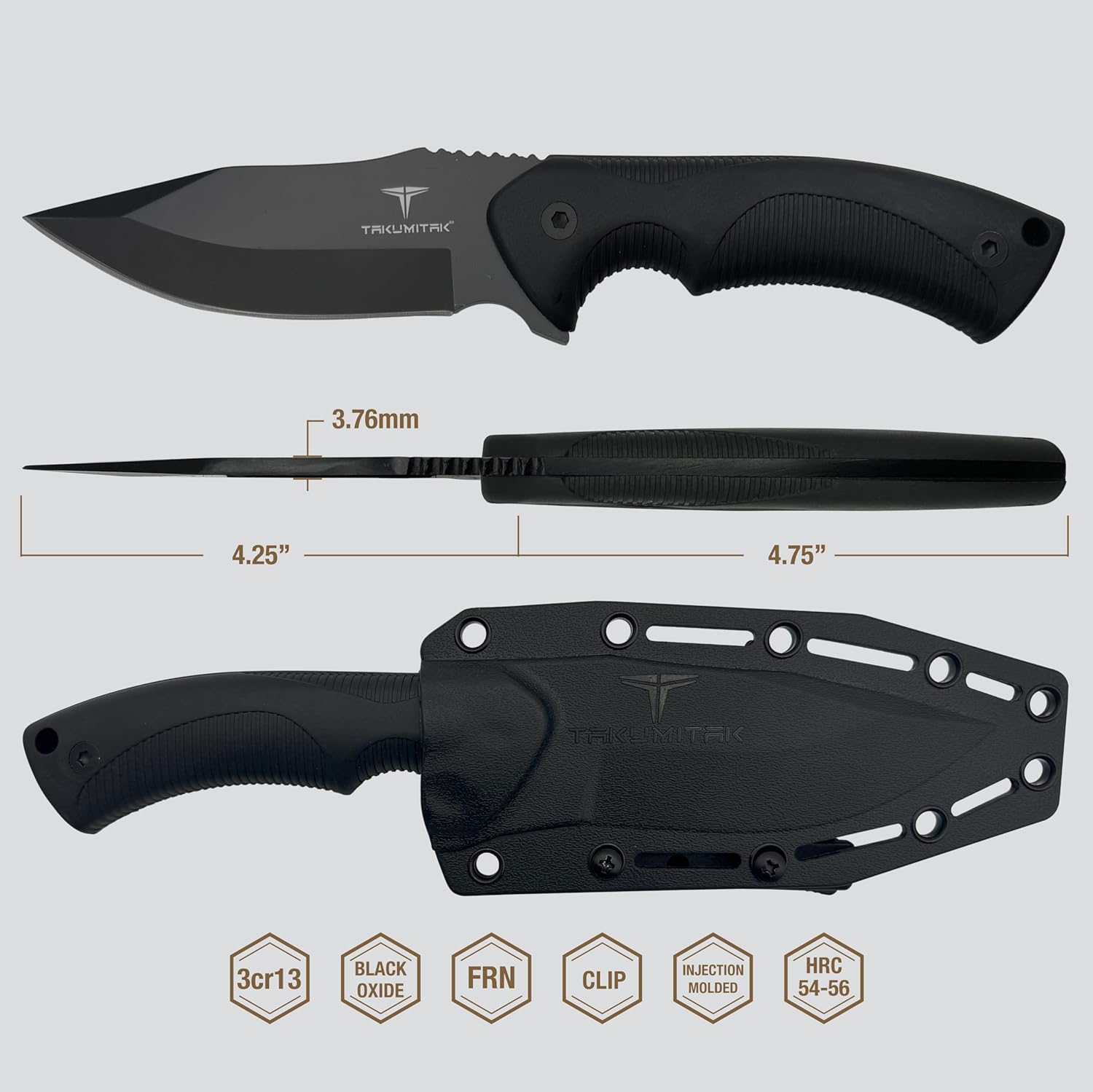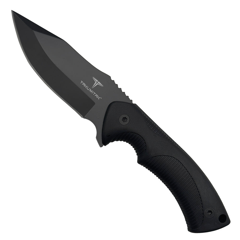 Takumitak Fit Fixed Blade Knife w/Sheath Black 3cr13 Steel Blade/Black & Tan Nylon Handles SKU TKF306