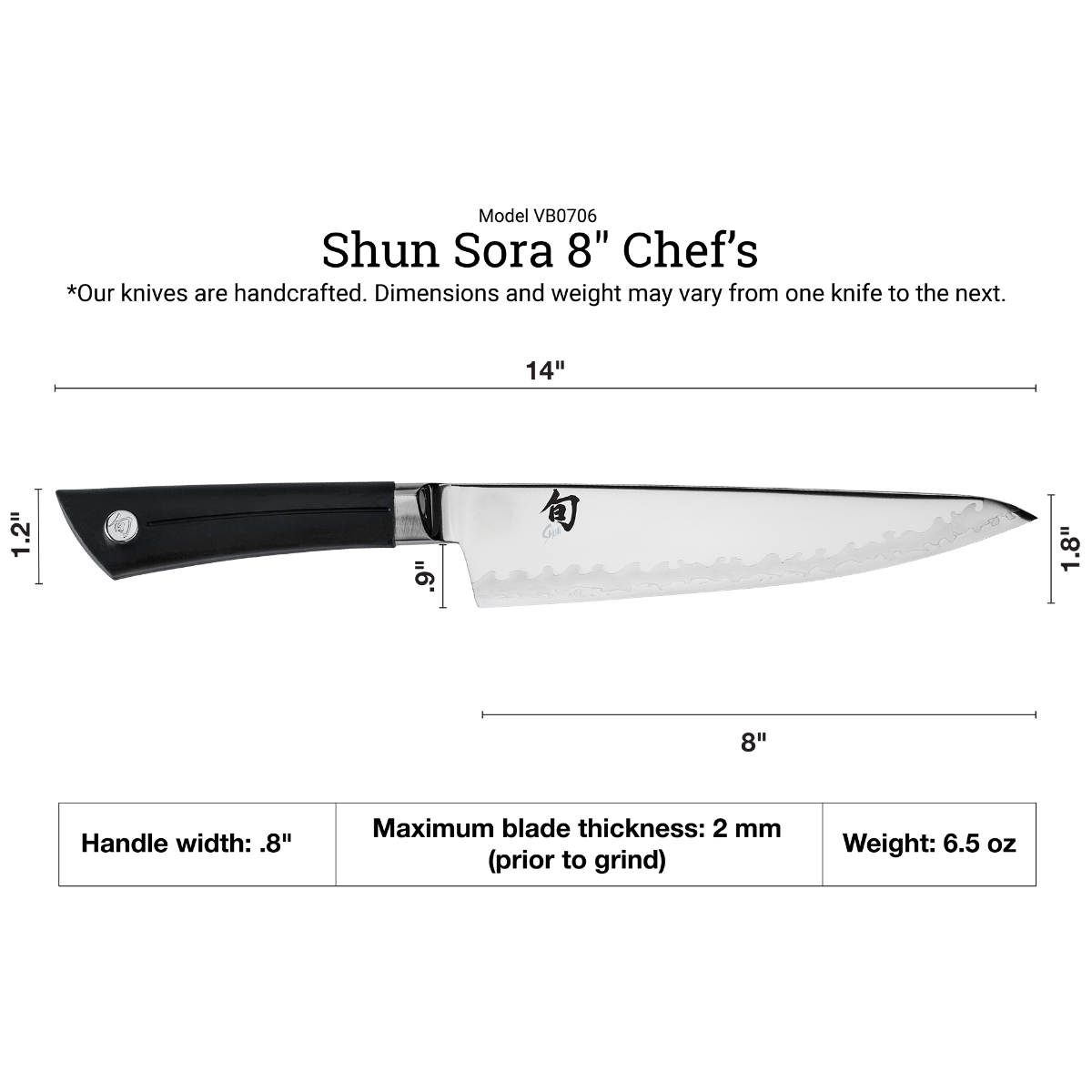 Shun Sora Chef's Knife 8" VG10 Steel Blade/Black Polymer Handle SKU VB0706