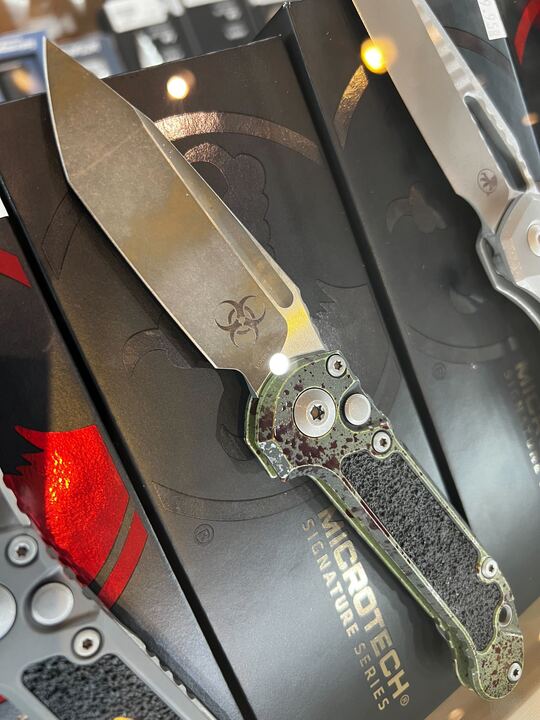 Microtech LUDT Gen III Automatic Knife Outbreak M390K Stainless-Steel Blade/Green Outbreak Aluminum Handle SKU 1136-1OBS