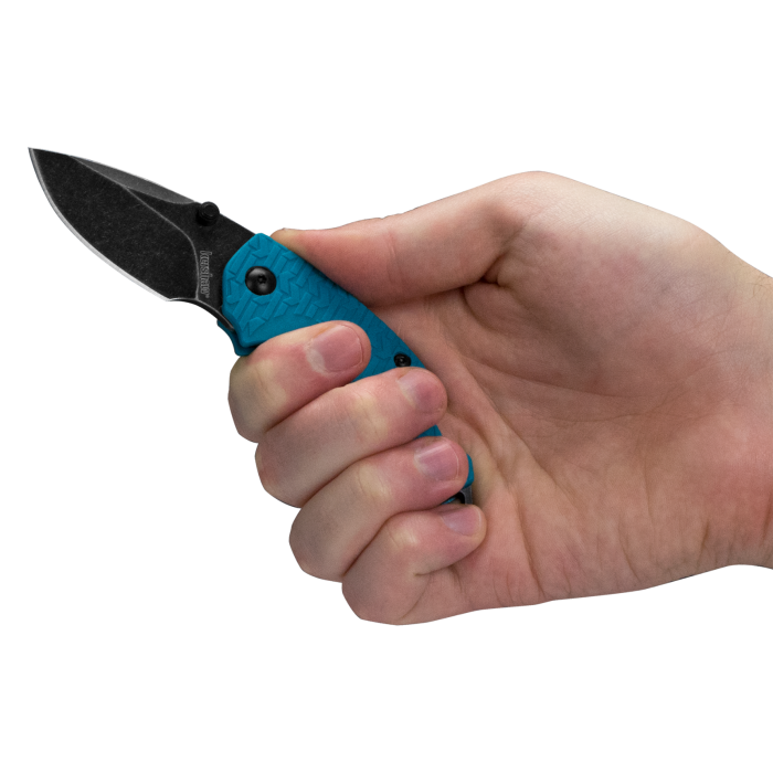 3.25" closed. 2.38" BlackWash finish 8Cr13MoV stainless blade. Teal textured GRN handle. Pocket clip. Integrated bottle opener. Screwdriver tip doubles as lanyard attachment. Boxed