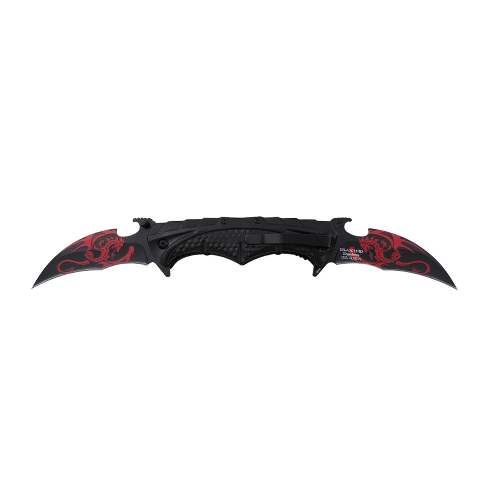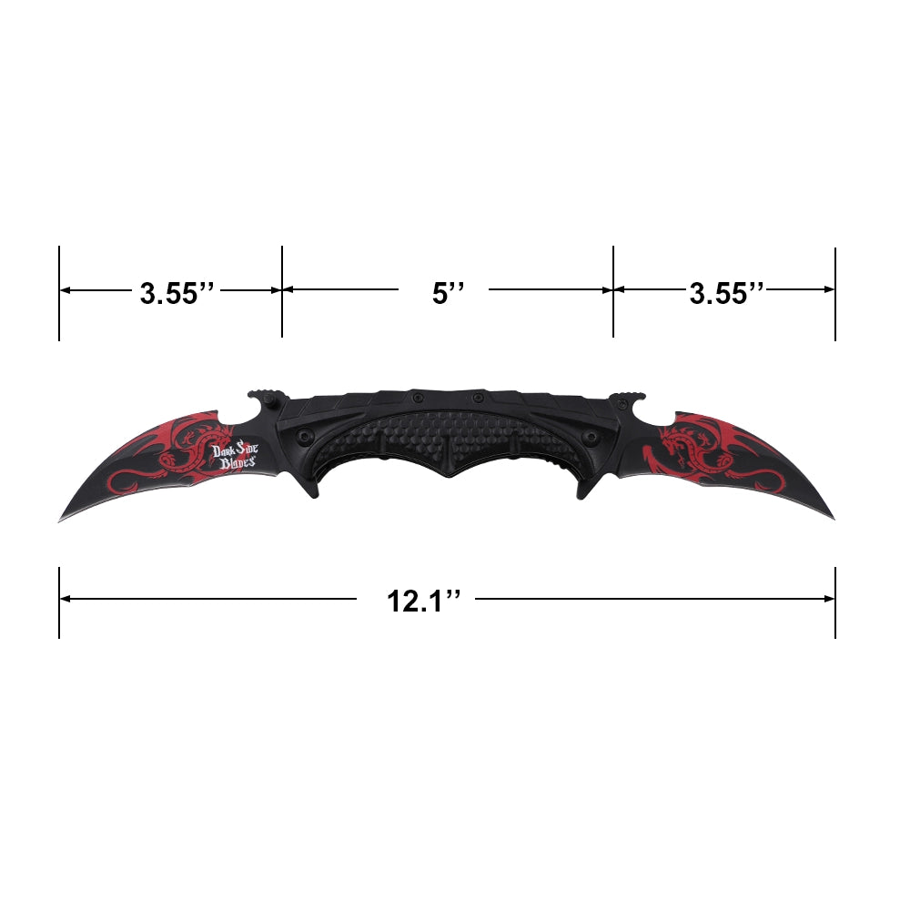 Dark Side Blades Spring Assist Double Bladed Liner Lock Knife Black with Red Dragon 3Cr13MoV Steel Blades/Black Aluminum Handle SKU DS-A2011RD