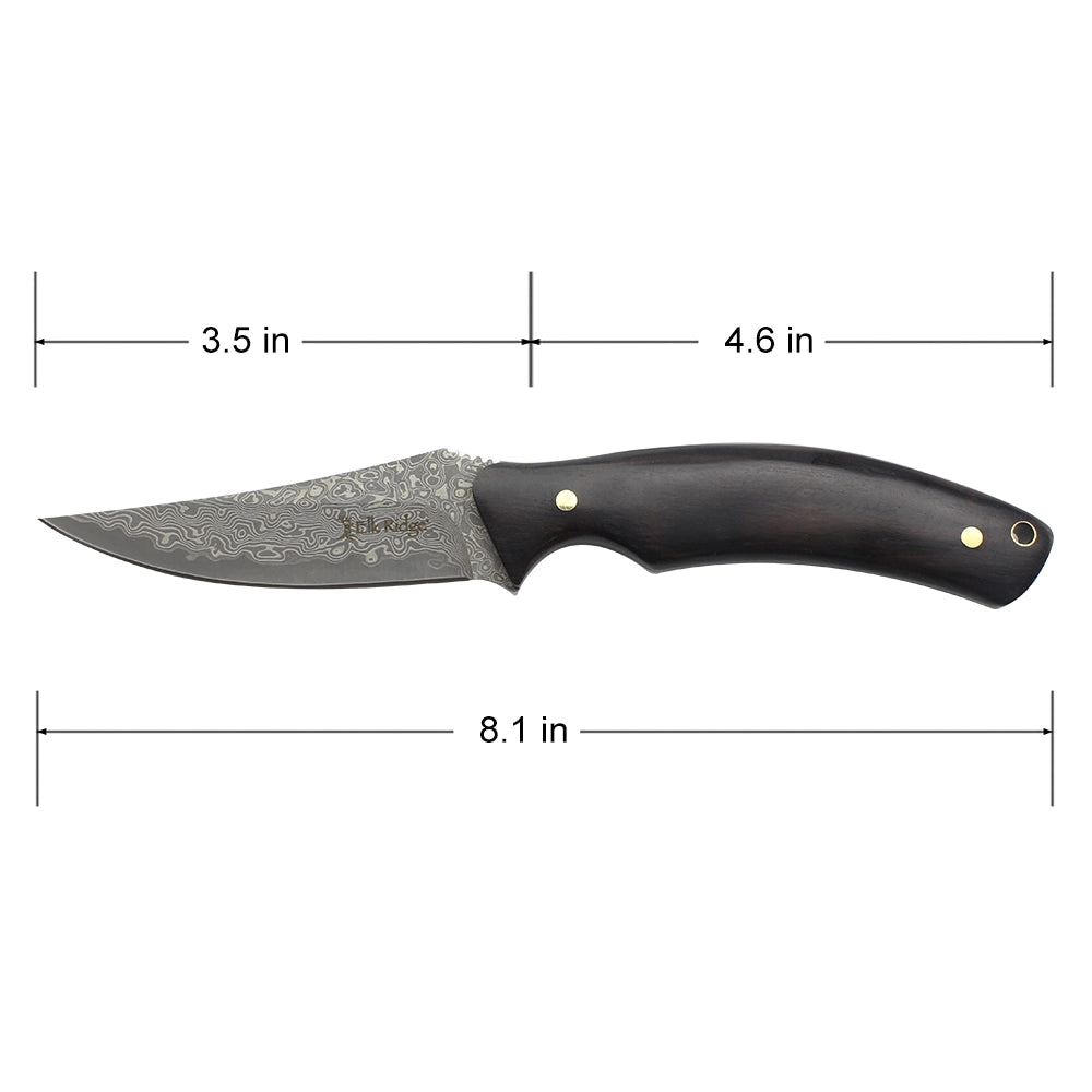 Elk Ridge Full Tang Fixed Blade Knife w/Leather Sheath Damascus Steel Blade/wood Handle SKU ER-FIX120DM