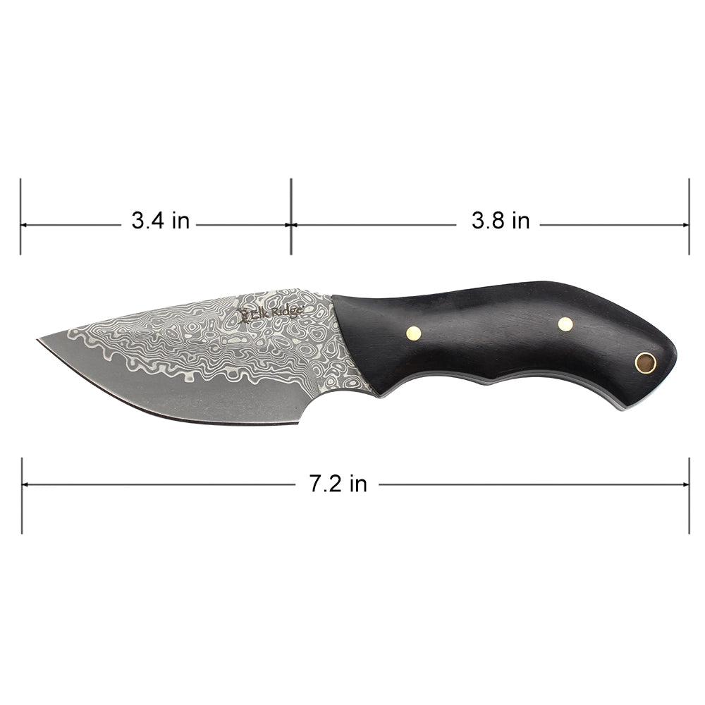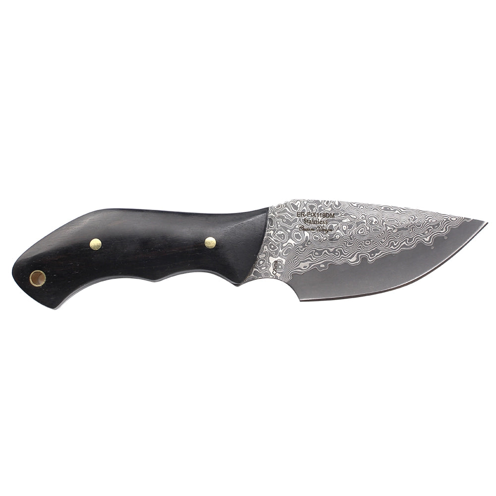 Elk Ridge Full Tang Fixed Blade Knife w/Leather Sheath Damascus Steel Blade/Wood Handle SKU ER-FIX118DM