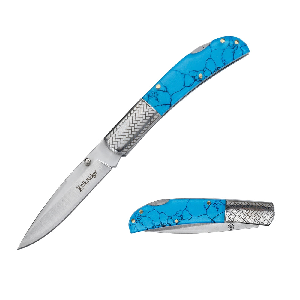 Elk Ridge Manual Lock Back Knife Satin Finish 3Cr13MoV Stainless-Steel Blade/Blue POM Handle & Steel Bolster SKU ER-2006BL
