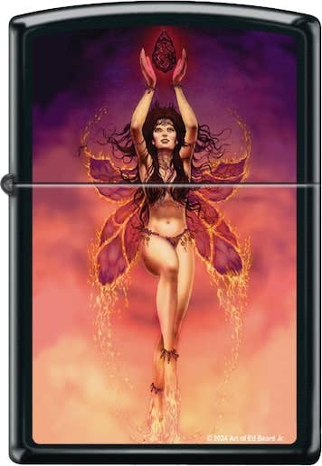 Fire Fairy Black Matte by: Ed Beard Zippo Lighter The iconic Zippo® lighter, trusted for generations. Featuring the unmistakable Zippo “click,” this windproof lighter is built to perform virtually anywhere. With its all‑metal construction, refillable design, and lifetime guarantee, it’s more than a lighter it’s a piece of American heritage. ✨ Features & Benefits - Authentic Zippo® Quality – Genuine windproof lighter with the signature Zippo “click.” - Durable All‑Metal Build – Designed for reliability and long‑lasting use. - Windproof Flame – Works virtually anywhere, even in challenging conditions. - Refillable for Life – For best performance, use genuine Zippo fuel, flints, and wicks. - Made in the USA – Backed by Zippo’s famous lifetime guarantee: “It works or we fix it free™.” 📐 Specifications - Fuel: Zippo lighter fuel (sold separately) - Height: 2.25″ - Width: 0.5″ - Depth: 1.5″ - Weight: 2.0 oz. 📦 Packaging & Compliance - Packaging: Retail‑ready Zippo branded box - Important Note: Zippo® branded