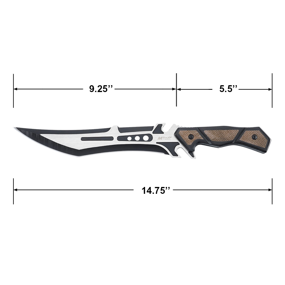 MTech Full Tang Fixed Blade Knife w/Sheath Two-Tone 3Cr13MoV Stainless-Steel Blade/Wood Handle 14.75" Overall SKU MT-FIX003BK
