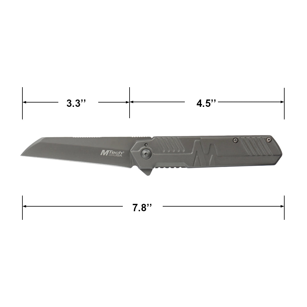 MTech Spring Assist Frame Lock Knife Gray TiNite Coated 3Cr13MoV Stainless-Steel Blade/Gray TiNite Coated Stainless-Steel Handle SKU MT-A2005TT
