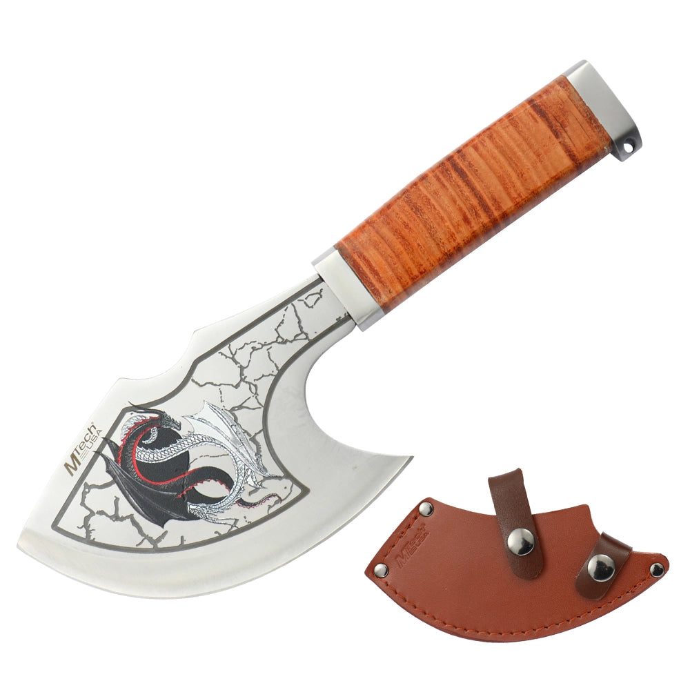 MTech USA Full Tang Axe w/Leather Sheath Dragon Embossed 3Cr13MoV Stainless-Steel Blade/Stacked Leather Handle 10" Overall SKU MT-AXE001D