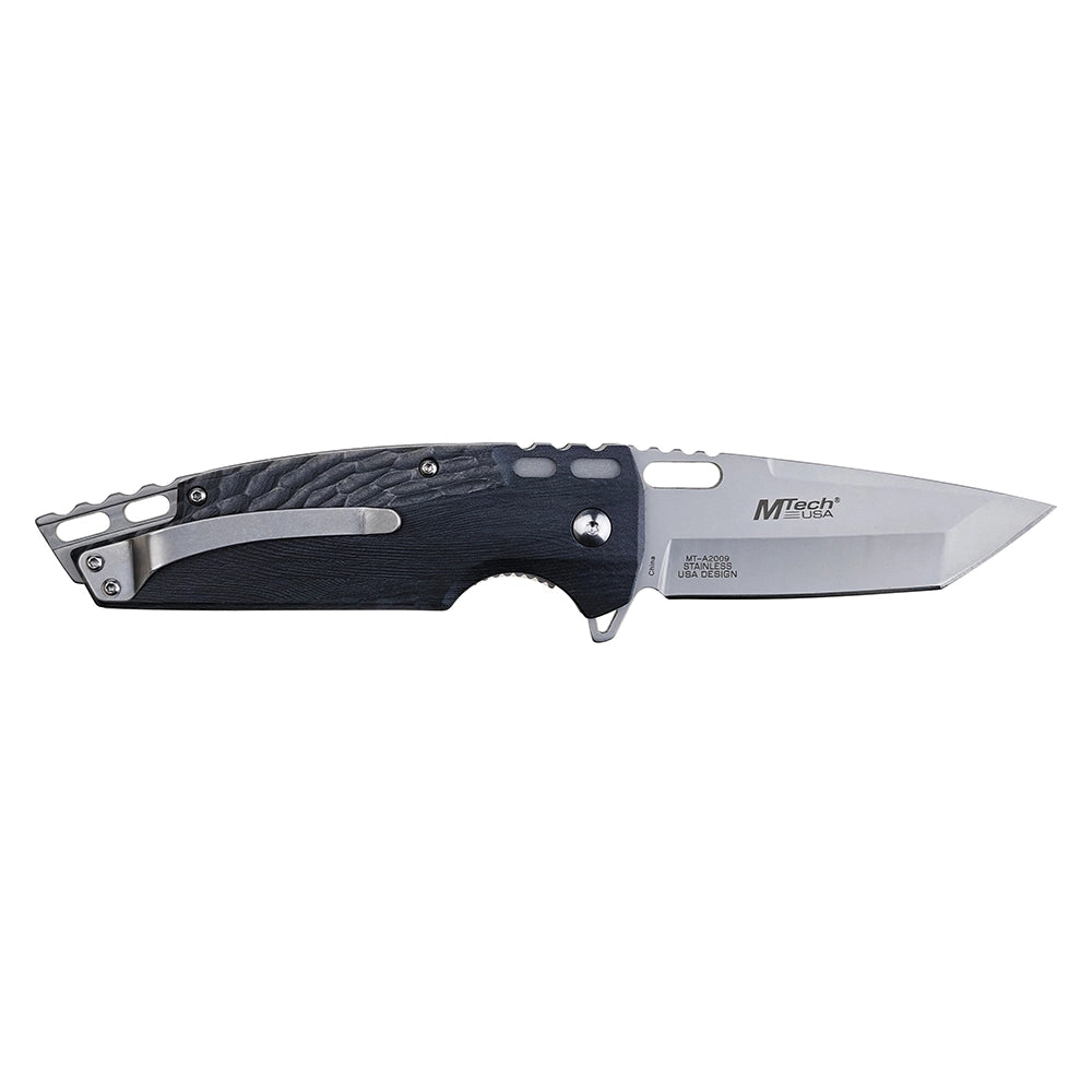 MTech USA Spring Assist Liner Lock Knife Satin Finish 3Cr13MoV Stainless-Steel Blade/Black Aluminum Handle SKU MT-A2009BK