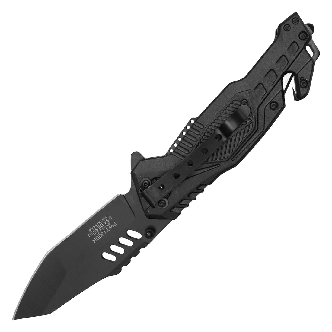 Wartech Spring Assist Tactical Rescue Knife Black 3CR13 Steel Blade/Black Handle SKU PWT130BK