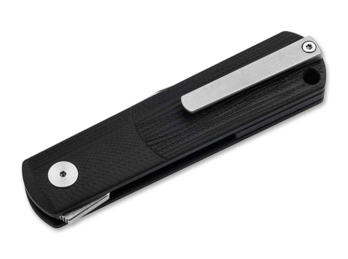 LoW-caRB for BRLW! Unimpressed by over 150 years of Boker Barlow history, the lightweight pocket-knife carries the legacy of the popular model series into the future with modern zeitgeist. Only the best materials, finest craftsmanship and 1869% passion flow into the elegant BRLW G10. The visually contrasting, precision-milled handle made of timeless black G10 is a defining feature of the style, lovingly echoing the characteristic, extra-long bolster at the front and the wood grain at the back of the handle. A discreetly integrated linerlock locks the ball-bearing clip-point blade made of powder metallurgical CPM MagnaCut (61-62 HRC) with a self-reliant ricasso. This blade steel is characterized in particular by its symbiosis of high edge-retention, hardness, corrosion-resistance and toughness. The discreet flipper, which disappears completely when open, and the flat, milled titanium clip (tip-up/r), which allows an inconspicuous deep-carry mode, contribute to the cultivated appearance. The lanyard hole for attaching lanyards to the end of the handle provides additional carrying options. The Boker BRLW G10 is delivered in a high-quality felt sheath. Handmade in the Boker Manufactory in Solingen.