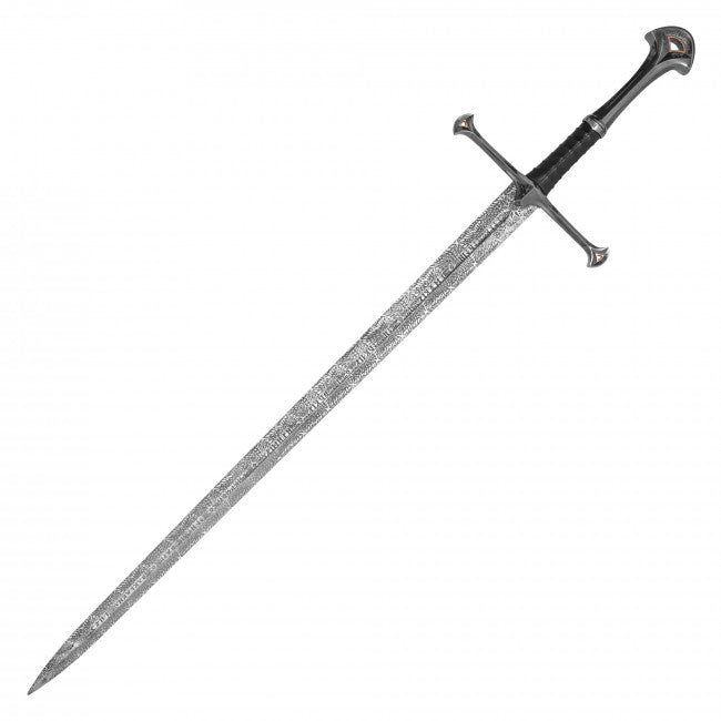 LOTR Replica Cosplay Anduril Sword w/Strapped Black Sheath Etched Stainless-Steel Blade/Silver & Black Handle 47.25" Overall SKU FS64B