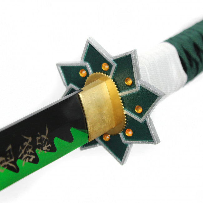 Sanemi Shinazugawa's Hand Forged Replica Sword w/Scabbard 1045 Carbon Steel Blade/Green & White Handle SKU KON14