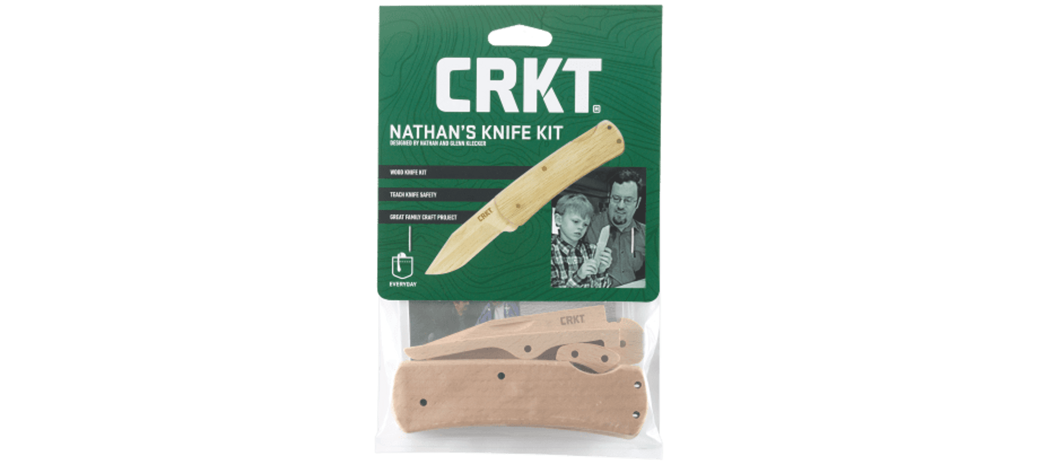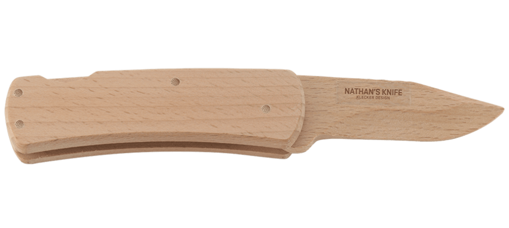 Award winning, Oregon based designer, Glenn Klecker and his son Nathan, developed this wood knife kit as a family crafts project that is not only a great engineering lesson in how a folding knife works, but also a creative woodworking project that can be painted, stained, or drawn on for fun.