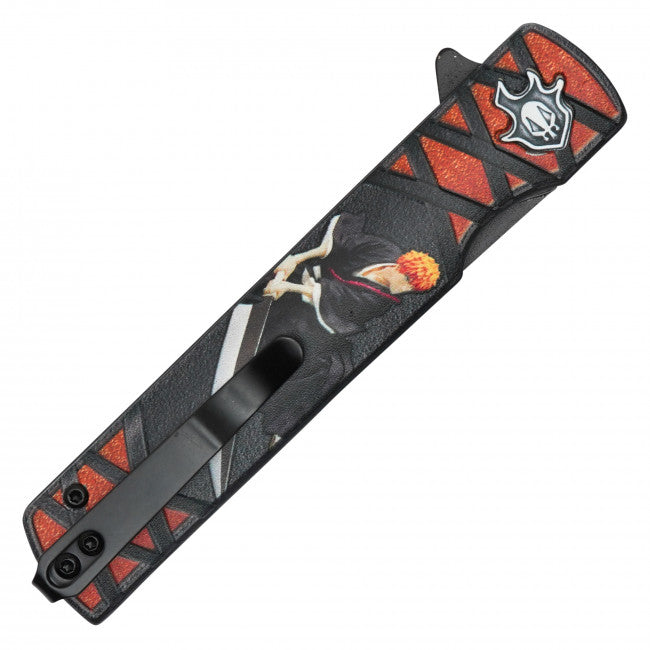 Ichigo Kurosaki Spring Assist Folding Knife Black Stainless-Steel Blade/Black & Red Printed Handle SKU PF72B