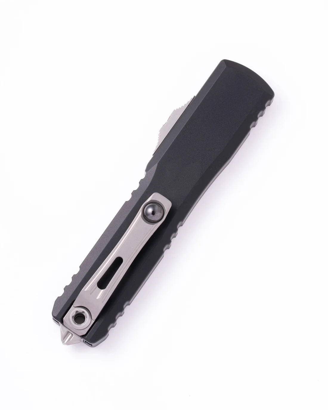 Microtech Ultratech Gen IV OTF Knife Stonewash Double Edge M390MK Steel Blade/Black Aluminum Handle SKU 11224-10