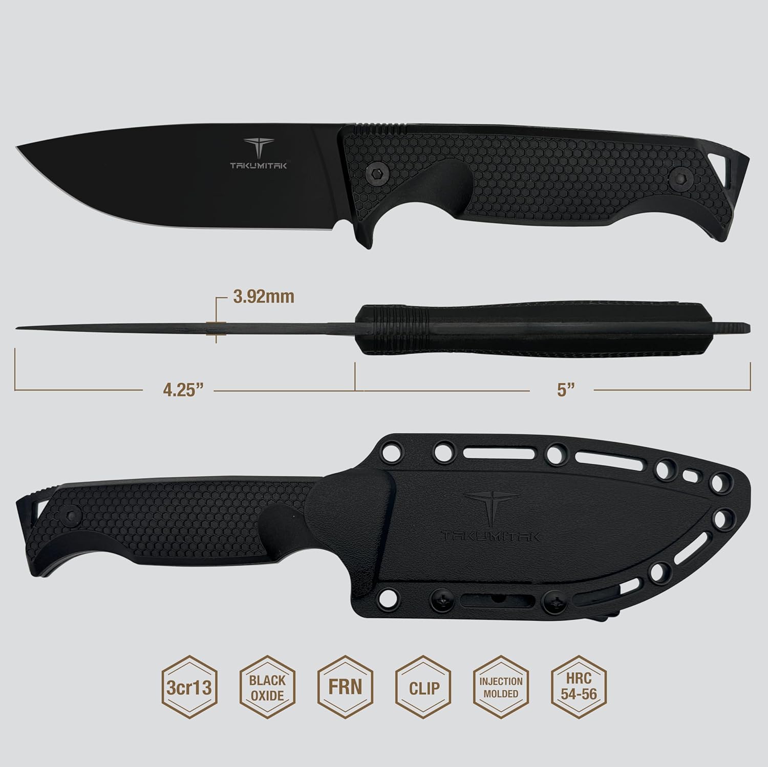 Takumitak Easy Night Fixed Blade Knife w/Sheath & 2 Handles Black 3cr13 Steel Blade/Black & Tan Nylon Handles SKU TKF304