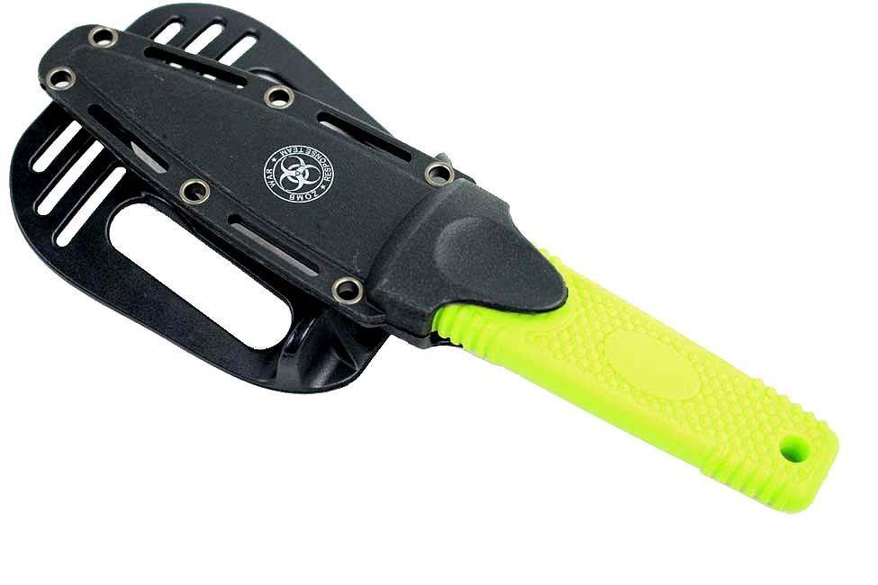 Zomb-War Boot Knife w/Sheath Black Serrated Steel Blade/Green Handle SKU 8164